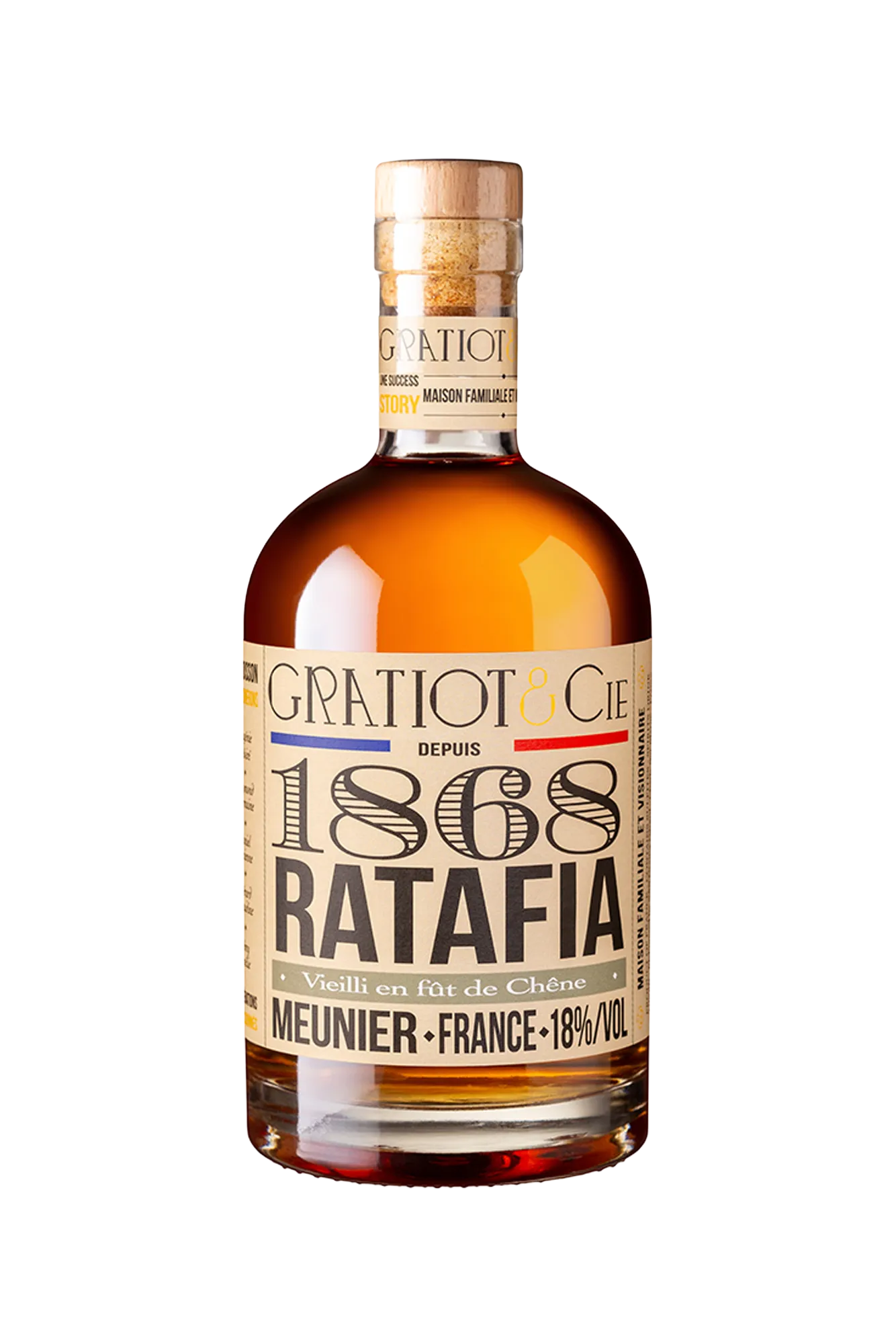 Le Ratafia de Champagne est un vin de liqueur élaboré en ajoutant du marc de Champagne (eau-de-vie champenoise aux arômes neutres) au moût de raisin (jus de raisin non fermenté obtenu après le pressurage).